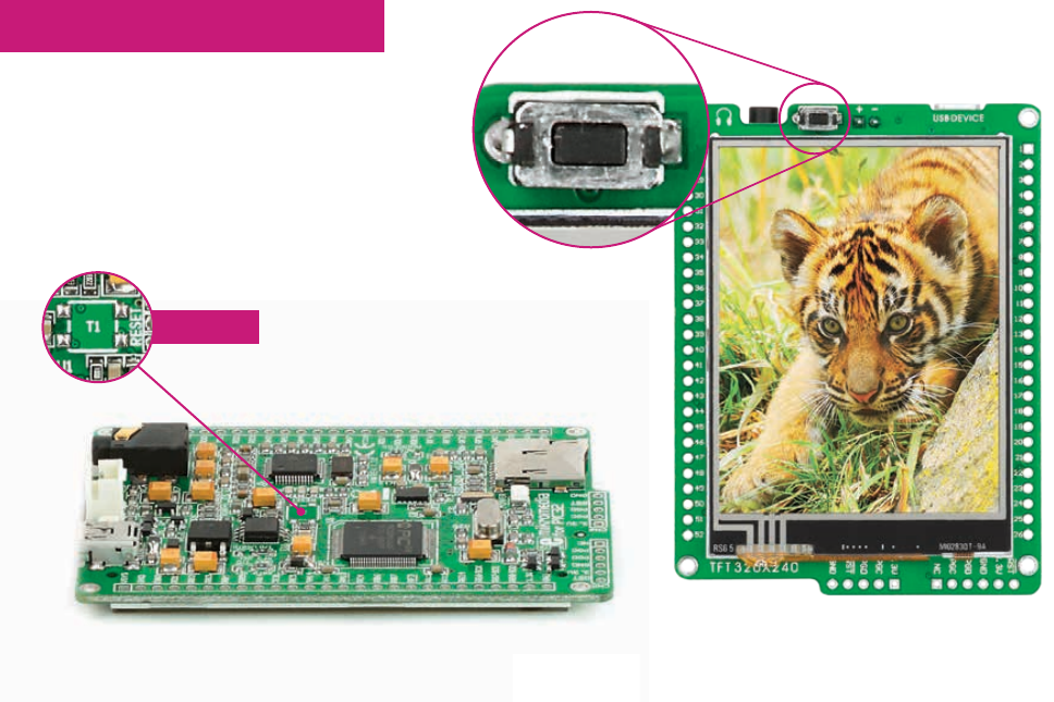 Board is equipped with reset button, which is located