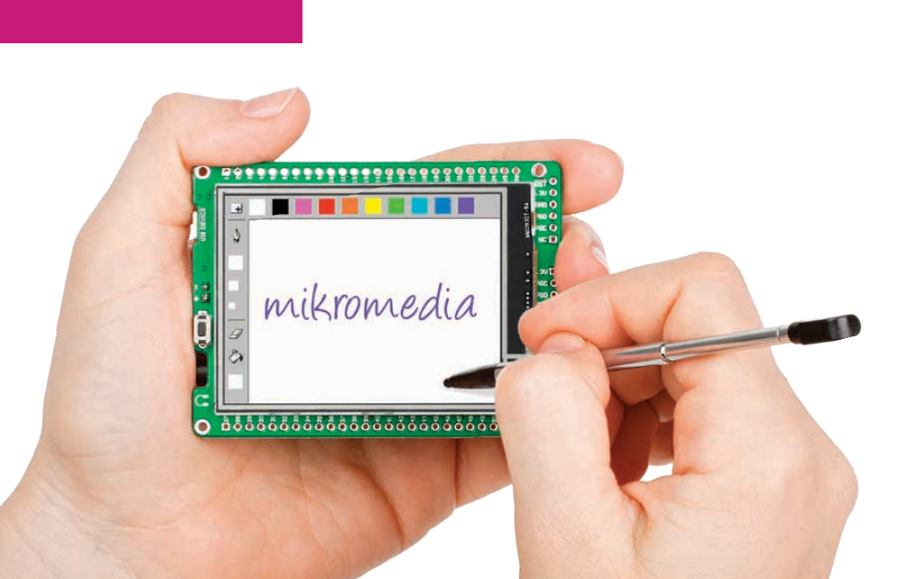 The development system features a TFT 320x240 display covered with a resistive