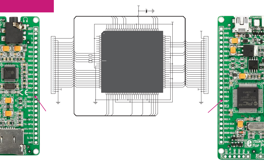 pads on both sides of the mikromedia board. They are designed to match additional shields,