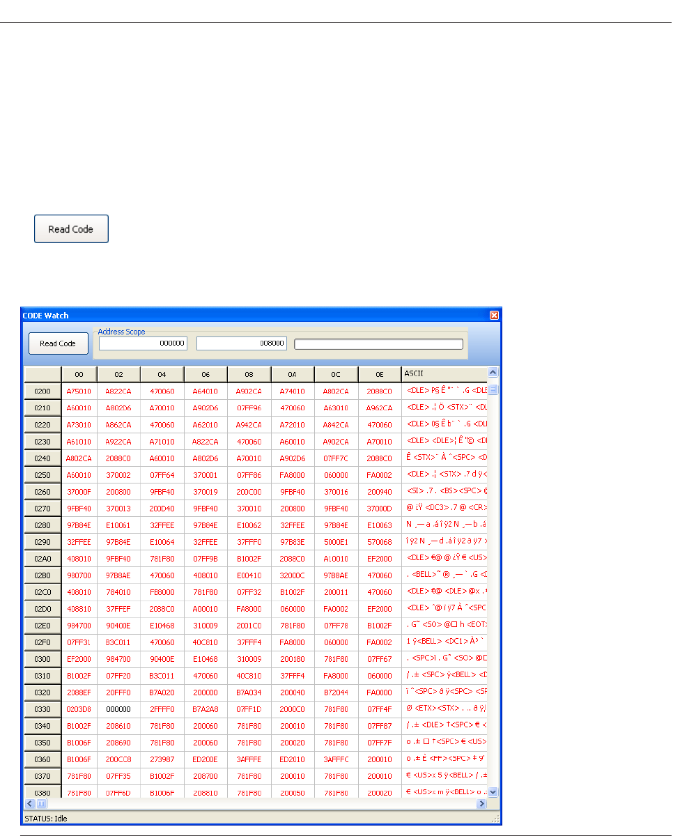 - Reads code from the MCU and loads it up into the Code Window. Code reading is resources