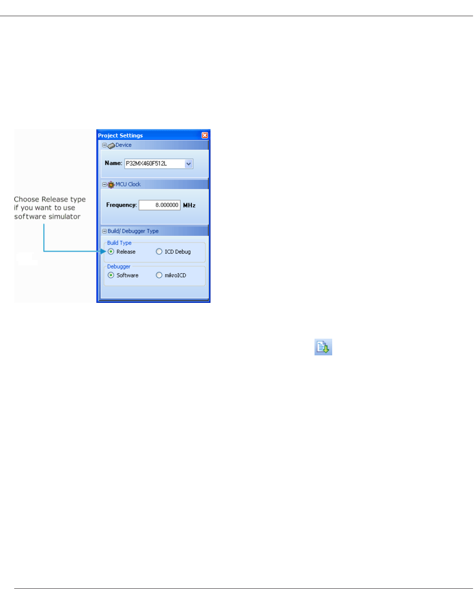Note: The Software Simulator simulates the program ow and execution of instruction lines, but it cannot fully emulate