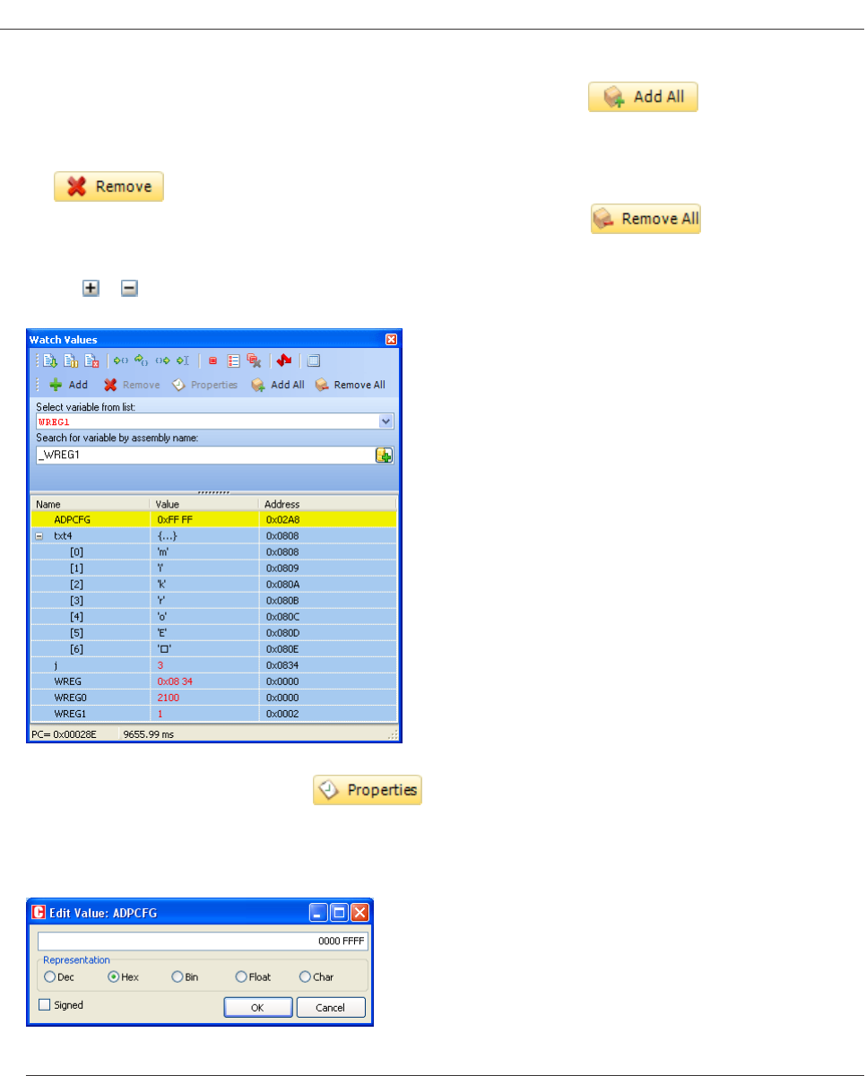 It is possible to remove all variables from the Watch Values Window by clicking button.
