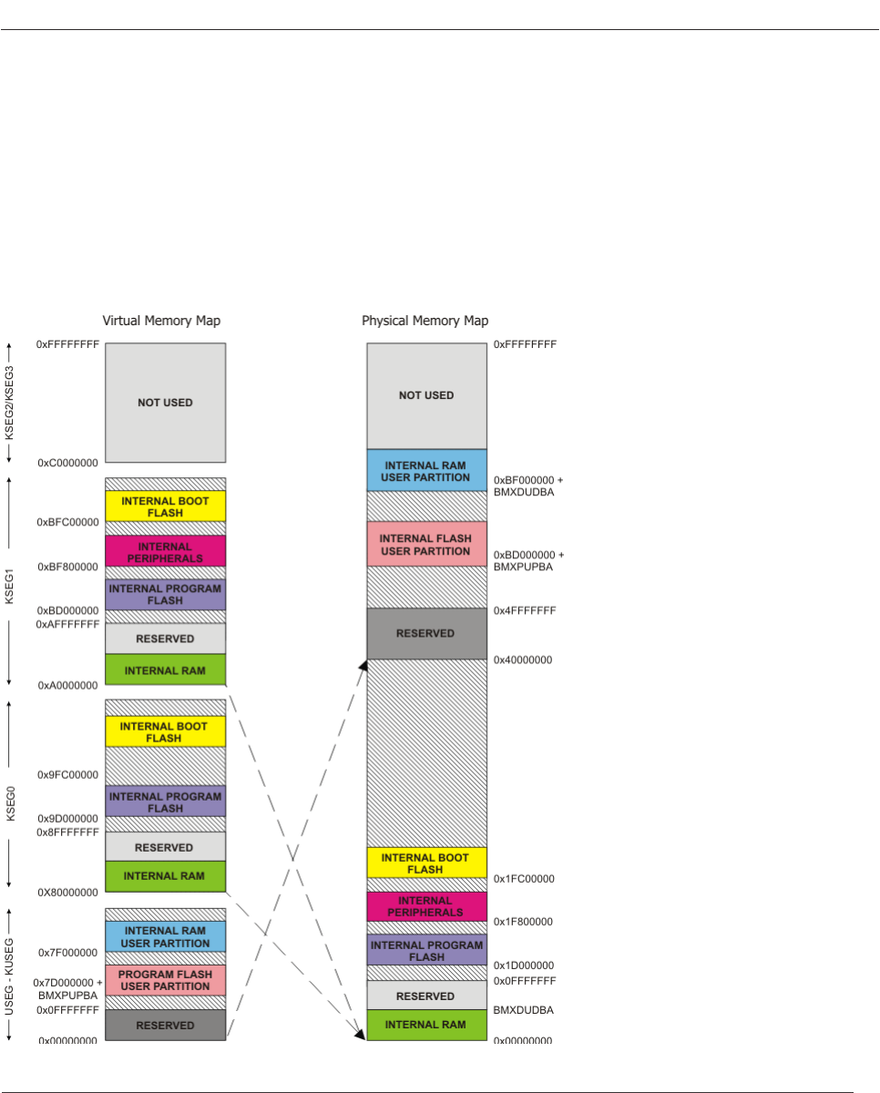 The PIC32MX microcontrollers implement two address spaces: virtual and physical.