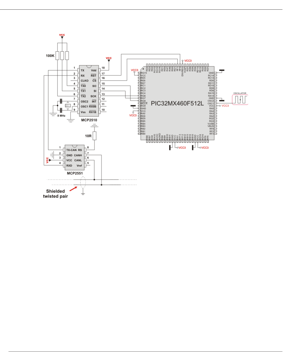 Example of interfacing CAN transceiver MCP2510 with MCU via SPI interface