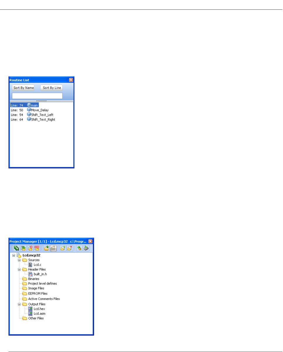 Routine list diplays list of routines, and enables ltering routines by name. Routine list window can be accessed by