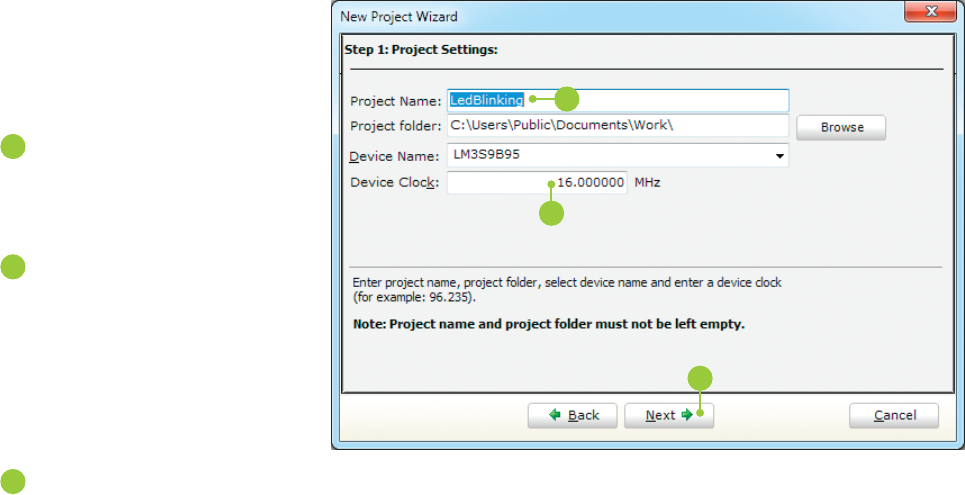 Figure 3-4: Enter project name and change device clock speed if necessary