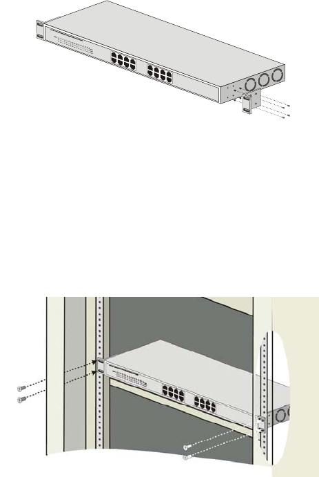 Secure the Switch to the rack with a screwdriver and the rack-mounting