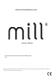 KEEP THIS INSTRUCTION MANUAL FOR FUTURE USE! NEVER TOUCH THE PRODUCT WITH WET HANDS OR COVER THE STEAM OUTLET Specifications Model Product # Color Capacity Control panel Wattage Working area Tank volume Speed levels Nightlight Timer settings Dimensions (W × D × H) TH350 CF-2806 White 350 ml/hour Electronic touch 30 W 30–50 m2 4.1 liters 3 (low/medium/high) Yes (ON/OFF) 2.4 and 8 hours 17 × 17 × 28.5 cm Description of the product EN 3 millclimate.