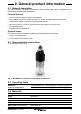 2. General product information 2.1 General description The MF2M Monnier miniature compressed air filter provides high quality compressed air for general purpose pneumatic applications. Principal features: - Once set compensates for varying air flowrates. Easy setting of oil / air ratio: approximately 5% of each oil drop enters the air stream. Tamper-proof feature; prevents unauthorised adjustment. Non-return valve in oil pick up system ensures lubrication for short air flows. Polycarbonate bowl.