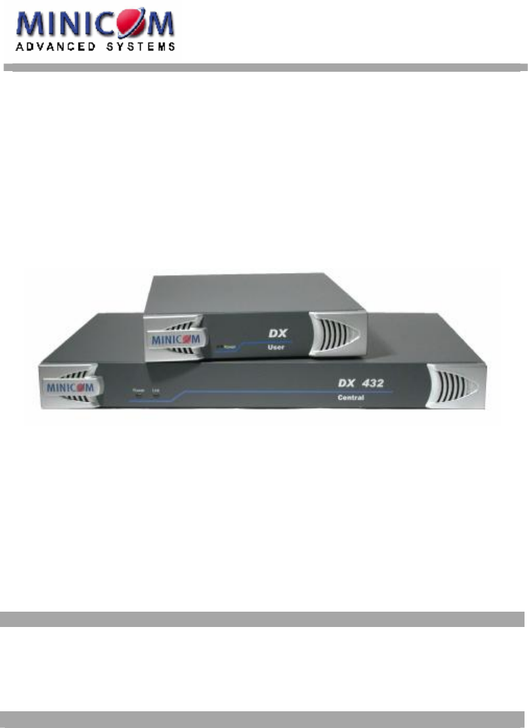 DX System User Guide w w w . m i n i c o m . c o m International HQ North American HQ European HQ Jerusalem, Israel Linden, NJ, USA Dübendorf, Switzerland Tel: + 972 2 535 9666 minicom@minicom.com Tel: + 1 908 4862100 info.usa@minicom.com Tel: + 41 44 823 8000 info.europe@minicom.com Technical support - support@minicom.