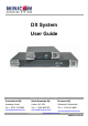 USER GUIDE Welcome Thank you for buying the DX system. This system is produced by Minicom Advanced Systems Limited. This document provides installation and operation instructions for Minicom’s DX system. It is intended for system administrators and network managers, and assumes that readers have a general understanding of networks, hardware and software.