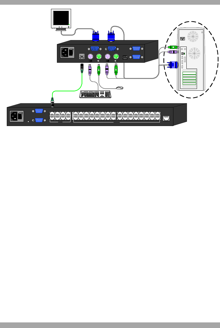 You use RICCs PS/2 or XRICCs and CAT5 cables to connect servers/devices to the