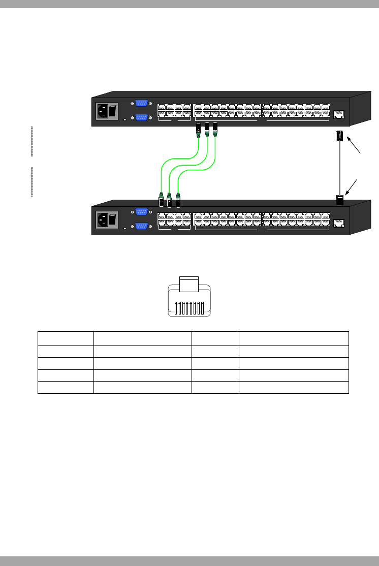 The table below shows the Ethernet RJ 45 Connector pin-out.