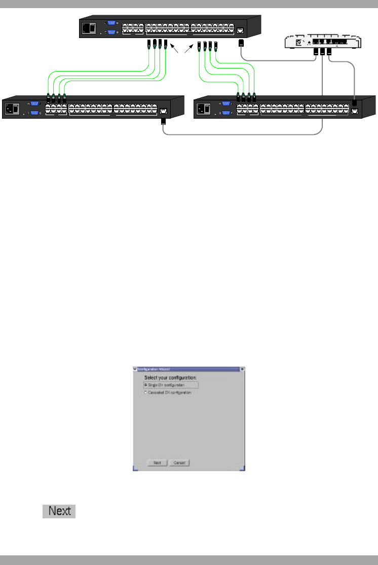 Figure 17 Cascaded DX Central units connected to a hub/switch