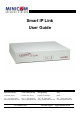 Smart IP Link User Guide International HQ North American HQ European HQ Italy Jerusalem, Israel Linden, New Jersey Zurich, Switzerland Rome Tel: + 972 2 535 9666 minicom@minicom.com Tel: + 41 1 455 6220 Tel: + 1 908 4862100 info.usa@minicom.com info.german@minicom.com www.minicom.com Tel: + 39 06 8209 7902 info.italy@minicom.com Customer support - support@minicom.