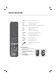 Quick Start Guide VOLUME Adjusts the audio volume. P /P Changes the channel or page. LIST Displays the channel list. i (Information) Displays the channel and programme information. OPT+ Displays the channels attributes. AUDIO Displays the audio list. SUB Displays the subtitle language list. TV/RADIO Switches between TV and radio modes. TEXT Enters the digital text service. SOURCE Controls the output of TV SCART. SLEEP Sets the sleep timer. V-FORMAT Sets the resolution of video.