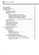 TABLE OF CONTENTS DiMAGE Scan Dual III Utility – Advanced scanning . . Setting scanner preferences . . . . . . . . . . . . . . . Exposure-control tab. . . . . . . . . . . . . . . . . . . . . Saving exposure settings. . . . . . . . . . . . . Loading exposure settings . . . . . . . . . . . . More index scan functions . . . . . . . . . . . . . . . . Reverse frame order . . . . . . . . . . . . . . . . Saving the index images . . . . . . . . . . . . . Saving an index file . . . . . . . . . . . . . . . . .