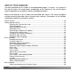 ABOUT THIS MANUAL The basic operation of this camera is covered between pages 12 and 33. This section of the manual covers the camera parts, preparation of the camera for use, and the basic camera operation for recording, viewing, and deleting images. Many of the features of this camera are controlled with menus. The menu navigation sections concisely describe how to change menu settings. Descriptions of the settings immediately follow the navigation sections. Names of parts ................................