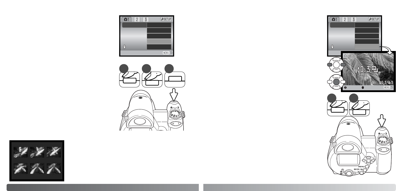 gedrückt, um mit der Belichtungsreihe zu beginnen; drei auf-