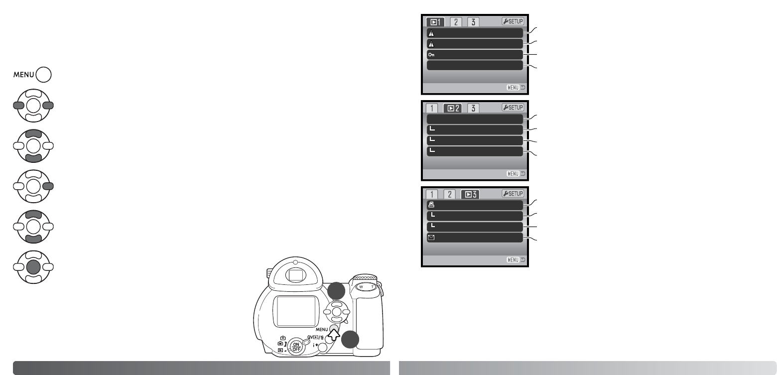 Mit der linken/rechten sowie der oberen/unteren Steuertaste (2) navigieren Sie im Menü. Durch