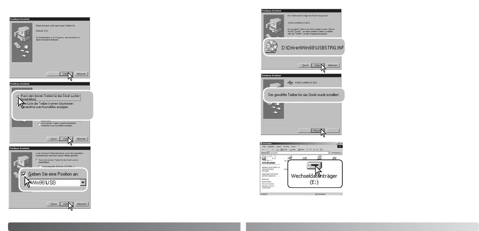 Um den Windows 98-Treiber manuell zu installieren, folgen