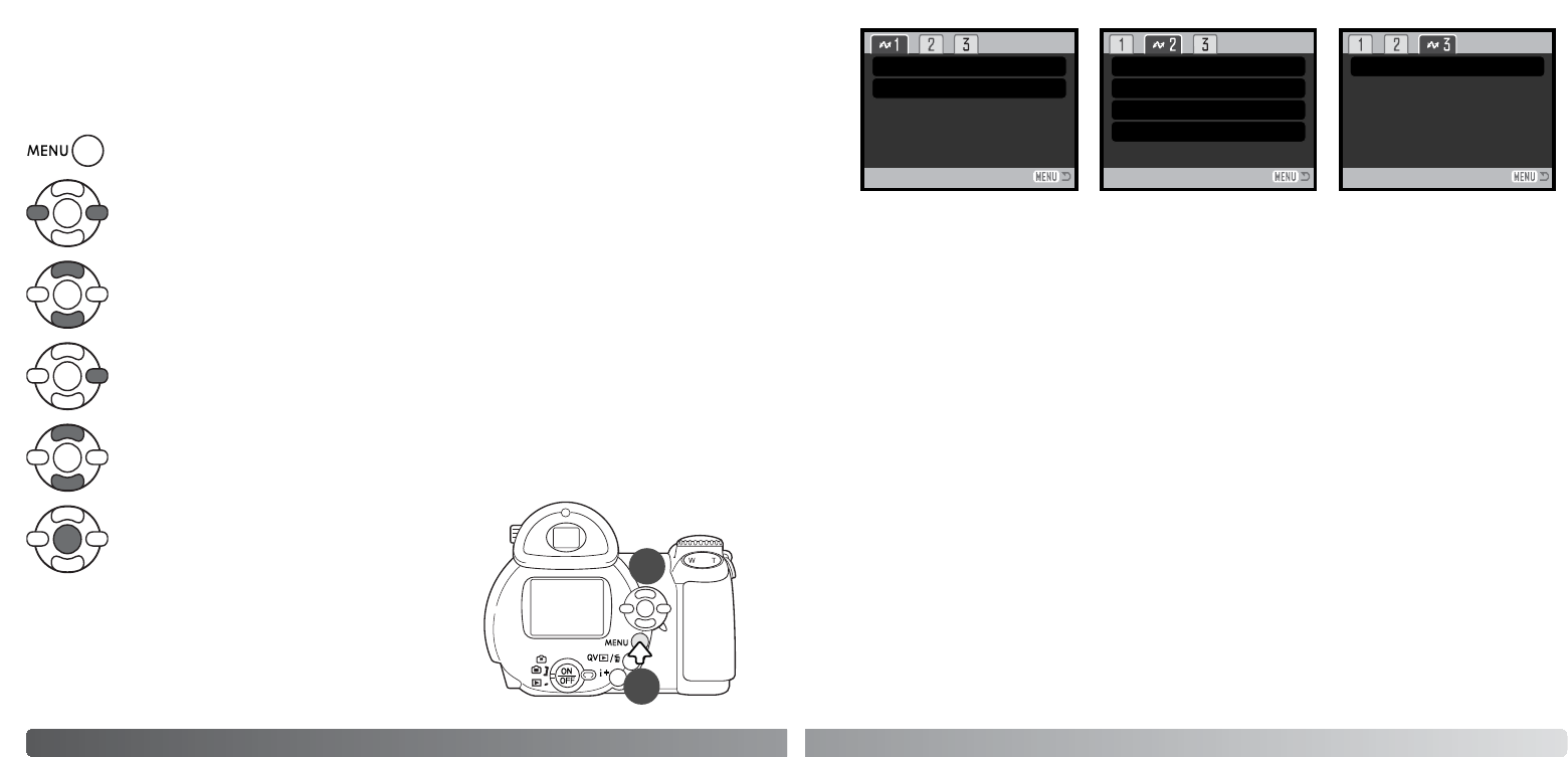 Drücken der Menütaste (1) schaltet die Menüanzeige ein und aus. Die Vier-Wege-Steuertaste (2)