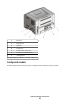 3 Feed paper into the manual feeder only to the point where its leading edge can contact the paper guides. 4 Adjust the paper guides to the paper width. Warning—Potential Damage: Do not force the paper into the feeder. Forcing the paper causes jams. Using the standard exit bin and paper stop The standard exit bin holds up to 150 sheets of 20 lb paper. It collects print jobs facedown. The standard exit bin includes a paper stop that keeps paper from sliding out the front of the bin as it stacks.
