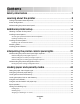 Contents Safety information.............................................................................7 Learning about the printer...............................................................8 Finding information about the printer...........................................................................................................................8 Printer configurations...................................................................................................................................