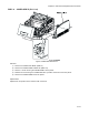 6) Release the latch at B from the printer and open the CHUTE ASSY OUT.