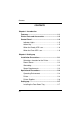 Contents CONTENTS Chapter 1: Introduction Features..................................................................1-1 Printer Parts and Accessories .............................1-2 Control Panel .........................................................1-4 Indicator Lights...................................................1-5 Action Key ..........................................................1-5 When the Ready LED is on................................1-6 When the Error LED is on ........................