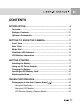 CONTENTS INTRODUCTION------------------------------------------------------------9 Overview------------------------------------------------------------------------------9 Package Contents-----------------------------------------------------------------10 Optional Accessories------------------------------------------------------------10 GETTING TO KNOW THE CAMERA---------------------------------11 Front View---------------------------------------------------------------------------11 Rear View--------------