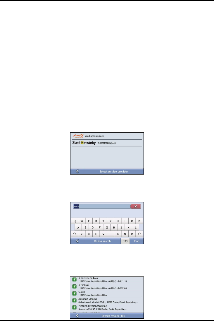 Mio Connect allows you to search for and navigate to POIs provided by online services.