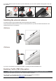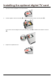 Installing the optional digital TV card 1. Open the TV card compartment cover as shown below. 2. Insert the digital TV card into the socket ( ), and then press down to lock the card into place ( If you need to remove the digital TV card, press the locking clips ( ( ). 3. Replace the compartment cover. 10 ).