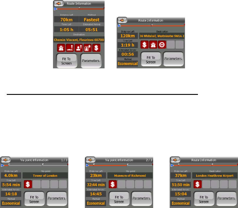 data that belongs to a via point, the route is coloured only up to that via point. The
