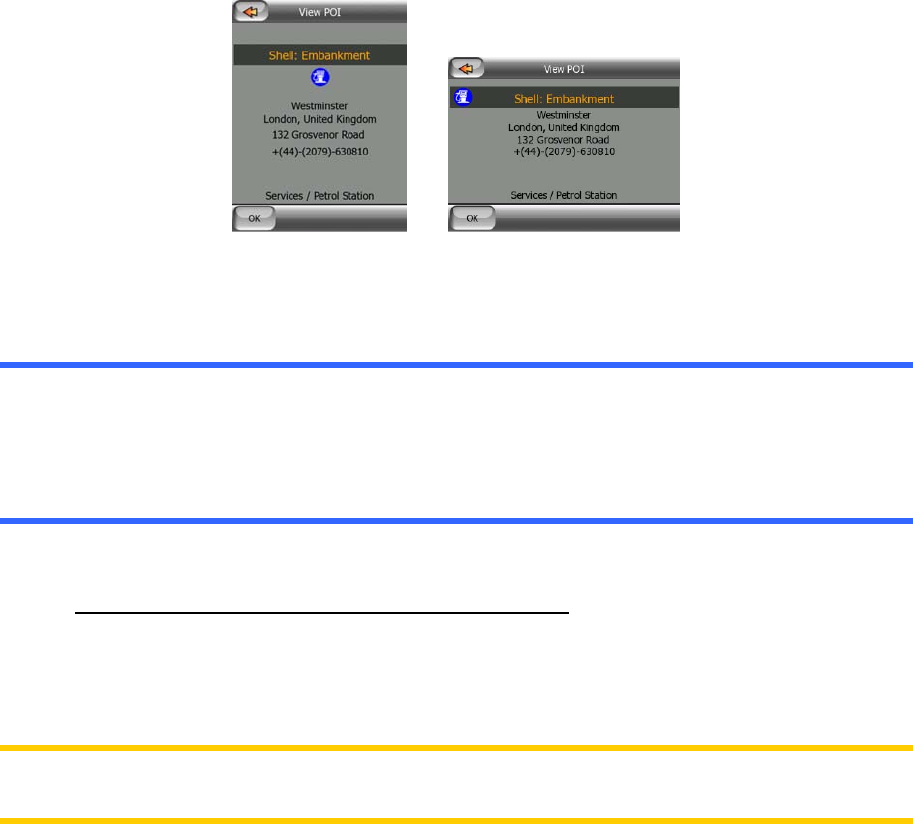 Tapping OK will return to the map with the selected POI in the centre (or starts