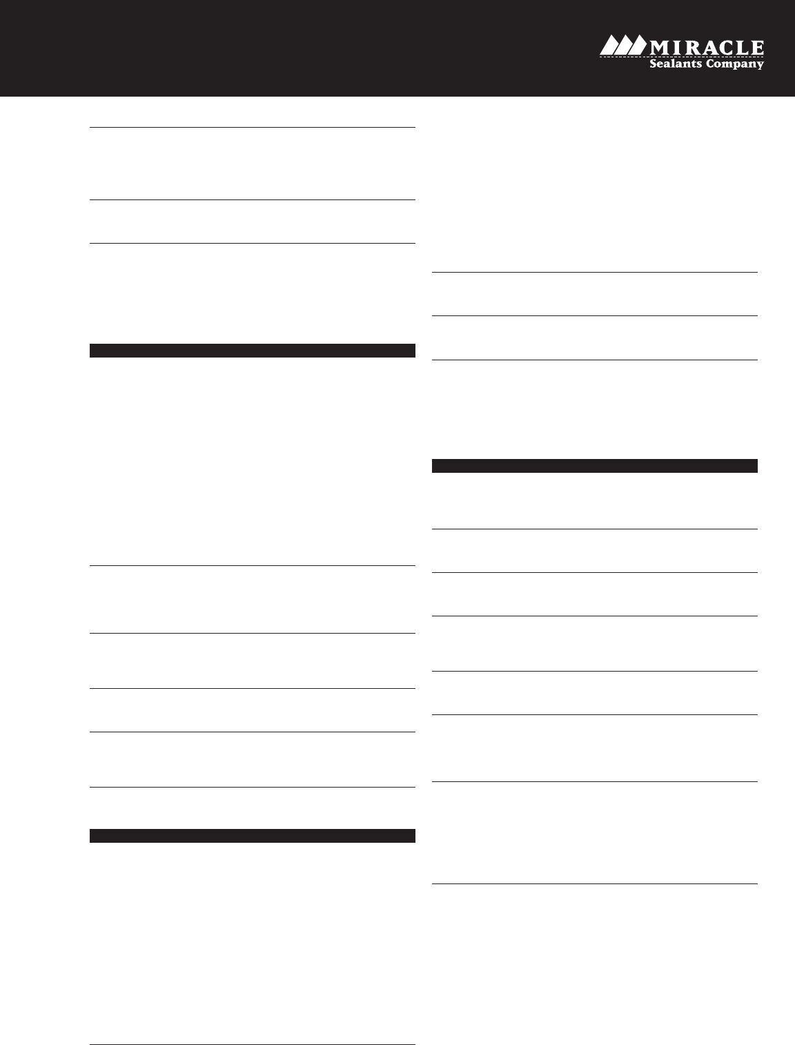 plete. In the event of failure, the only obligation of Miracle Sealants