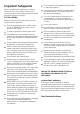 Important Safeguards Do not operate in the presence of flammable or explosive material. When using electrical appliances, in order to reduce the risk of fire, electric shock and/or injury to persons, basic safety precautions should always be followed, including: Do not reach for an appliance that has fallen into water. Switch ‘OFF’ at the power point and unplug immediately. For Your Safety Read all instructions carefully, even if you are familiar with the appliance.