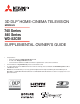 ® 3D DLP HOME-CINEMA TELEVISION MODELS 740 Series 840 Series WD-82CB1 SUPPLEMENTAL OWNER’S GUIDE • • • • For questions: - Visit our website at www.mitsubishi-tv.com. - E-mail us at TVsupport@mevsa.com. - Call Consumer Relations at 800-332-2119 for operational or connection assistance. For information on System Reset, please see the back cover. To order replacement or additional remote controls or lamps, visit our website at www.mitsuparts.com or call 800-553-7278.