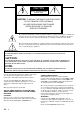 CAUTION RISK OF ELECTRIC SHOCK DO NOT OPEN CAUTION: TO REDUCE THE RISK OF ELECTRIC SHOCK, DO NOT REMOVE COVER (OR BACK) NO USER-SERVICEABLE PARTS INSIDE REFER SERVICING TO QUALIFIED SERVICE PERSONNEL. The lightning flash with arrowhead symbol within an equilateral triangle is intended to alert the user to the presence of uninsulated “dangerous voltage” within the product’s enclosure that may be of sufficient magnitude to constitute a risk of electric shock.