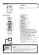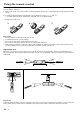 Using the remote control Battery installation Use two AA size batteries. 1. Remove the back cover of the remote control by pushing the battery compartment door in the direction of the arrow. 2. Load the batteries making sure that they are positioned correctly (+ to +, and - to -). • Load the batteries from - spring side, and make sure to set them tightly. 3. Replace the back cover. 1 2 3 Important: • Do not combine a new battery with an old one. • Load batteries in the correct position.