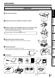 BEFORE OPERATION 2 Push the ink cassette toward the back of the unit. PRECAUTIONS Hold the handle of the ink cassette and push it straight toward the back of the unit. Then raise it until you hear a click to secure it in the ink cassette holder. NOTE If the ink ribbon is used up, repeat the steps 1 to 2 to replace the print paper and the ink ribbon. FEATURES CONNECTIONS PREPARATION 3 Push the center of the door to close. The print paper setting is initialized two minutes after you close the door.