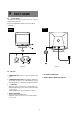 1.7 1.9 Quick Operation Chart Unpacking To summarize the steps in connecting your computer with the color monitor and setting the necessary controls and switches, refer to the chart below. After you unpack the box you should have all of the items indicated in Figure 1. Save the box and packing materials in case you transport the monitor. 1 2 Connect the color monitor and computer with the necessary cords and cables. See Section 3. INSTALLATION AND CONNECTION Turn on the color monitor.