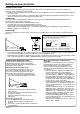 This projector has two indicators, each of which shows the operation condition of the projector. The following offer solutions to possible problems. If these problem persist, turn the projector off and consult your dealer. POWER indicator STATUS indicator Normal condition POWER STATUS Steady red Off Steady green Blinking green Steady green Steady green CONDITION NOTE Stand-by Lamp stand-by (about 1 minute) The POWER button cannot be used to switch between on and off. The power is on.