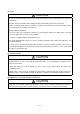 (4) Usage CAUTION y Provide an external emergency stop circuit to ensure that operation can be stopped and power switched off immediately. y Any person who is involved in disassembly and repair should be fully competent to do the work. y Before resetting an alarm, make sure that the run signal is off to prevent an accident. A sudden restart is made if an alarm is reset with the run signal on. y Do not modify the equipment. y Use a noise filter, etc.