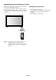 English Basic Operation Power ON and OFF Modes The LCD monitor power indicator will turn green while powered on, or red when in off mode. The monitor can be powered on or off using the following three options: 1. Pressing the power button. Note: Before operating the remote control, be sure to turn on the Main Power Switch on LCD monitor. Power Switch 2. Using the remote control. Note: Before operating the remote control, be sure to turn on the Main Power Switch on the LCD monitor.