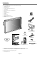 Contents Your new LCD4000 LCD monitor box* should contain the following: • LCD4000 LCD monitor • Power Cord (3 m) • PC - Video Signal Cable SC-B113 (4 m) • User’s Manual • Wireless Remote Control and AA Batteries • Clamper x 2 • Screw (M4 x 10) x 2 • CD-ROM • Ferrite Core x 4 • Stand for Independence x 2 • Screw (M5 x 40 mm) for stand x 4 • Band x 3 Ferrite Core x 4 Power Cord PC - Video Signal Cable (D-SUB to D-SUB Cable) Clamper x 2 Screw (M4 x 10) x 2 Stand for the Independenc