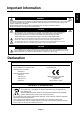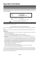 Important Information ................................................................................................................................... English-2 Safety Precautions, Maintenance & Recommended Use ............................................................................ Contents ....................................................................................................................................................... English-4 English-5 Parts Name and Functions ...........