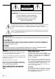 CAUTION RISK OF ELECTRIC SHOCK DO NOT OPEN CAUTION: TO REDUCE THE RISK OF ELECTRIC SHOCK, DO NOT REMOVE COVER (OR BACK) NO USER-SERVICEABLE PARTS INSIDE REFER SERVICING TO QUALIFIED SERVICE PERSONNEL. The lightning flash with arrowhead symbol, within an equilateral triangle, is intended to alert the user to the presence of uninsulated “dangerous voltage” within the product’s enclosure that may be of sufficient magnitude to constitute a risk of electric shock.