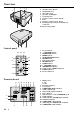 Overview 4 6 5 1 2 3 4 5 6 7 8 9 Air inlet slots (Front) Terminal board Air outlet slots Speaker (Left/Right) Control panel Remote control sensor (Front) Lens Remote control sensor (Rear) Kensington Security Lock Standard connector 10 Easy-carry handle 7 3 2 1 Control panel 8 14 9 1 2 3 4 5 6 7 8 9 10 11 12 13 14 13 12 LAMP 1 10 TEMP 11 ZOOM/ FOCUS 2 10 VOLUME COMPUTER VIDEO 3 9 MENU 4 8 ENTER 7 AUTO POSITION MUTE 5 Power button – (VOLUME) button COMPUTER button MENU button AUT