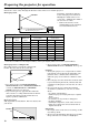 Preparing the projector for operation Orientation of the projector Picture size can be set by changing the distance between the screen and the projector. Front projection To find the approximate distance screen between the projector and screen: Multiply the width of the screen ✕ 2.0 (max.) , Multiply the width of the screen ✕ 2.5 (min.). • Refer to the chart to recommended distances in maximum zoom and minimum zoom.